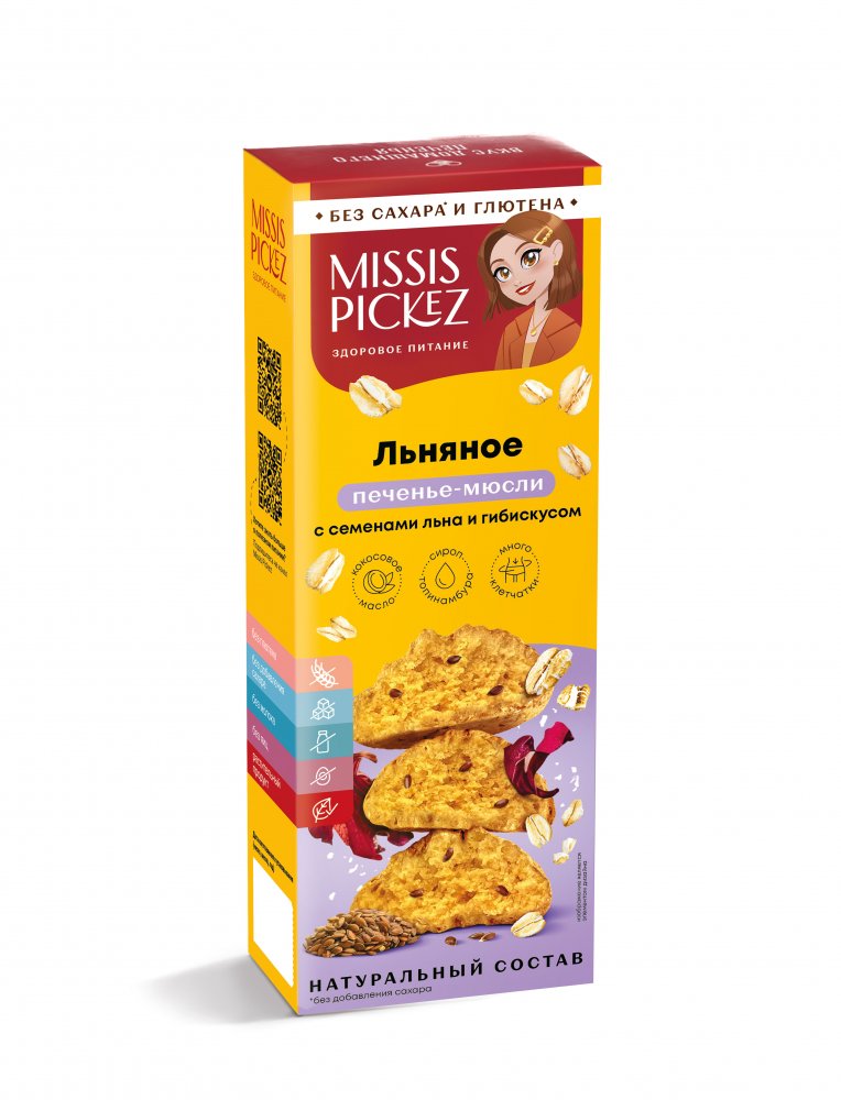 Печенье-мюсли "Льняное" Missis Pickez без сахара и глютена.