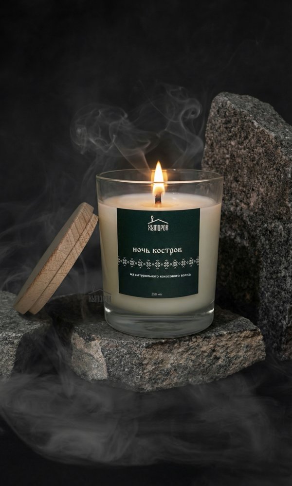 Глубокий аромат ночного костра наполняет пространство теплом и тихой таинственностью. В нём звучат дымные ноты тлеющих поленьев, сухой древесины и лёгкой прохлады ночного воздуха. Этот аромат переносит к огню под открытым небом, где искры поднимаются в тёмное небо, а вокруг царит спокойствие и уют.